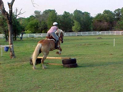 Kinda hard to see around that mane. (next time I'll work on sitting up a bit more - no need to crouch over jumps this low)