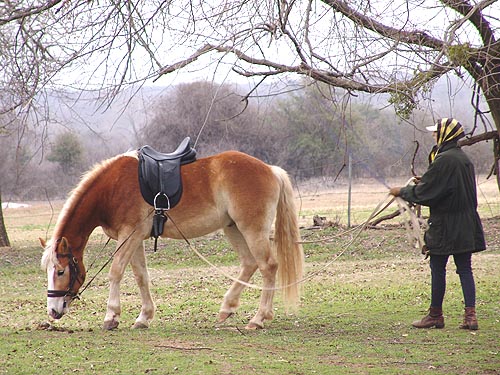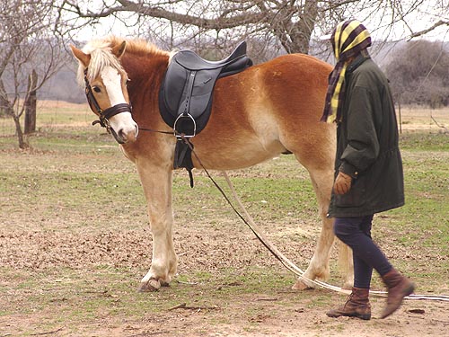 Adiron in side reins. I think if I had, he wouldn't bother pulling on the