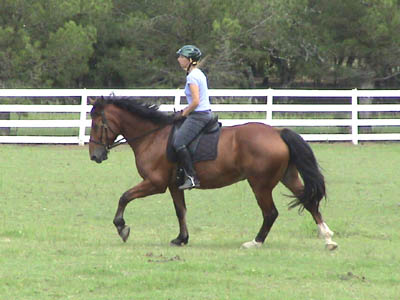 The difference is letting him stretch into the bridle and not getting him behind the bit. He seems to want to go where I put him, but I tend to flex him more than I should. Strange, but if I balance myself better on him (shoulders back), he lifts his front end more and reaches into the bridle(that's why we have trainers...). |