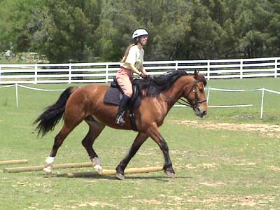 Very bouncy over the trot poles. After three tries we had a nice straight line.