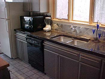 And after. Quite a difference. I didn't think I'd like it, but the contrast is wonderful. When the counters were the same color as the cabinets everything seemed washed out. |