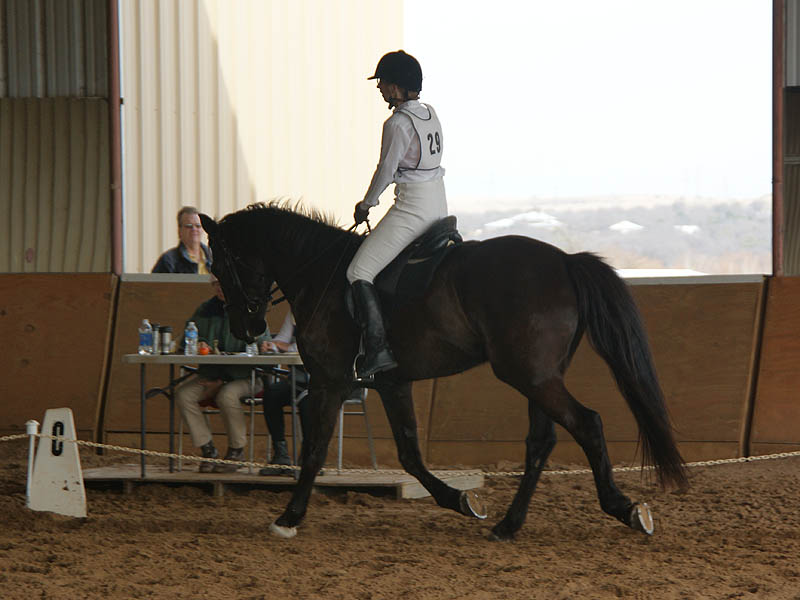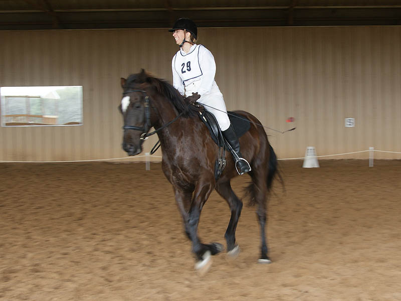 We were dinged on our canter transitions. The judge said I was shortening him at