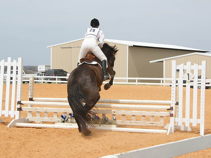 Again, handsy, trying to get him to balance before the next fence.