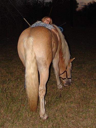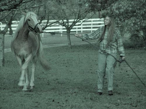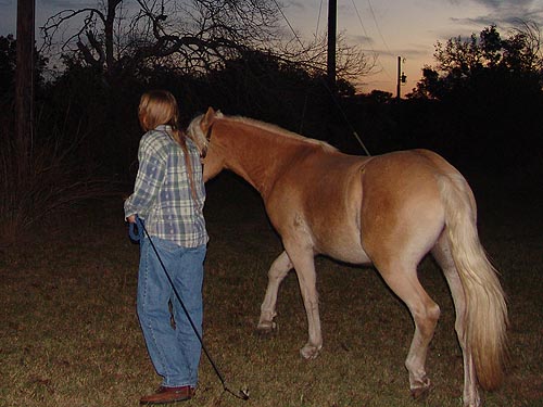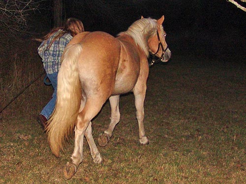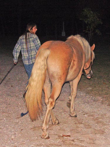 Adirondack seemed to figure it out and trotted right away, but he tested the bounds and picked up a canter and left. No biggy, he stopped almost immediately and grazed. We might start introducing the bit to him pretty quickly, since he'll be under saddle next year. |