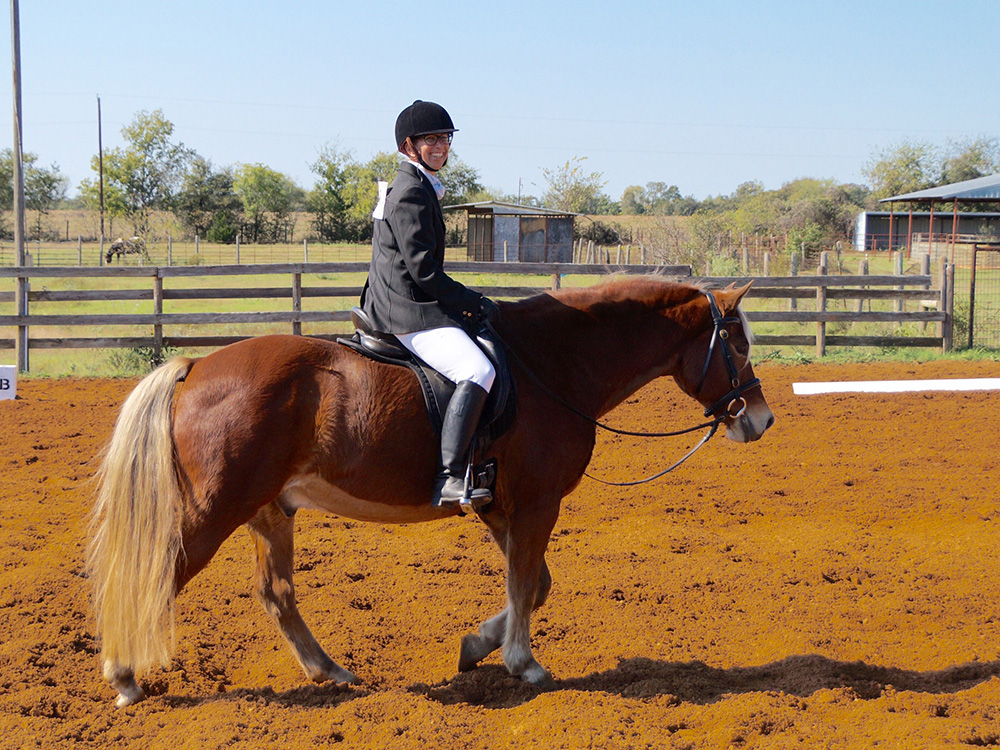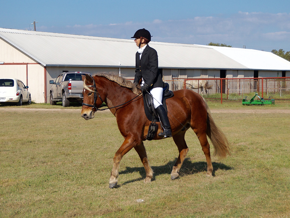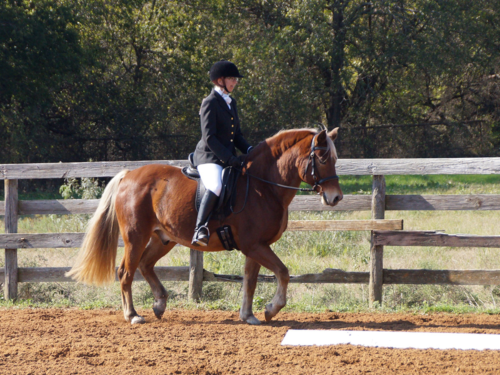 at a Dressage Show It was a lovely day for dressage and Simon settled quickly. He was very obedient in the ring but I could feel part way through the first test he did start to tire of staying in frame. We didn't have a good walk with stretch and our halts are questionable, but we came away with a 1st and 3rd in our two Intro classes. With some more work he'll be ready for Training Level.