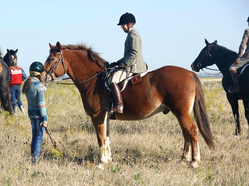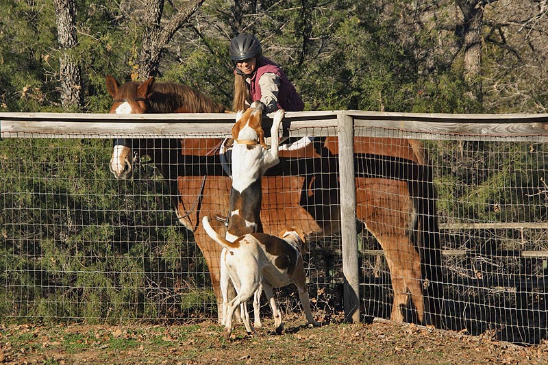 Watching the huntsman gather the hounds. He's learning his new job, but it's obvious