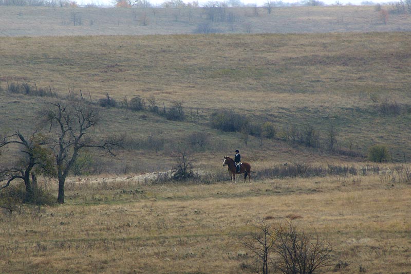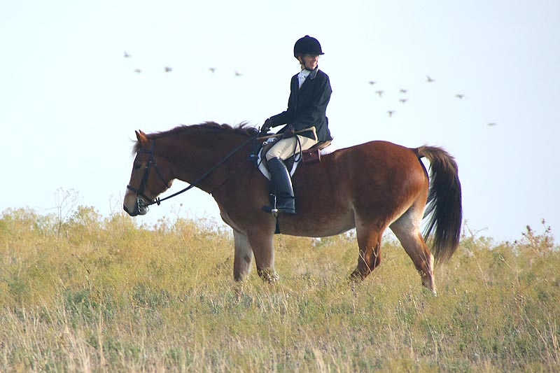 Fall hunting. Amanda has ridden Thistle around at the house, but they don't know