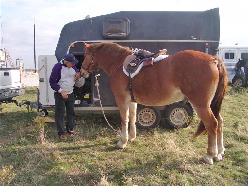 Heading out to the East. I wondered how Thistle'd be with other horses since he